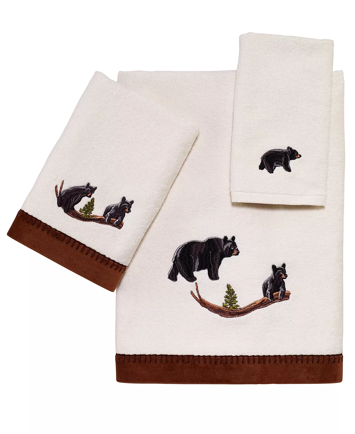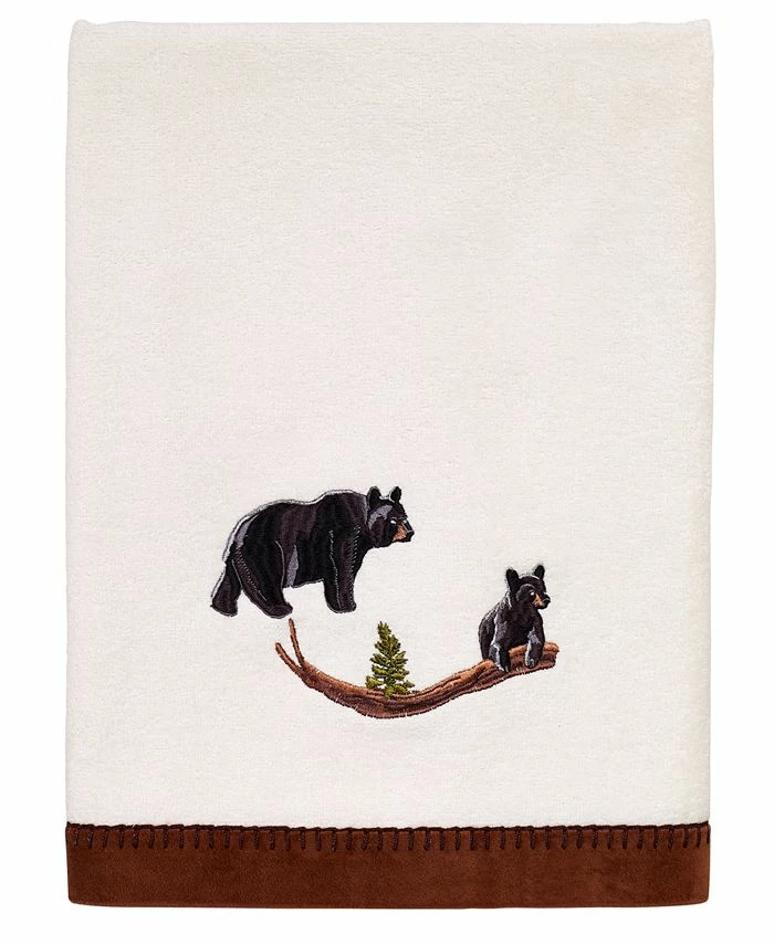 Bring the fresh look and feel of the great outdoor into your bathroom with the Avanti Black Bear Lodge bath towel featuring an adorable family of black bears embroidered on a 100% cotton towels.