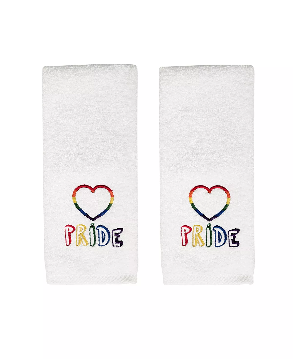 The Avanti Pride 2 pack hand towel set features an embroidered multicolor “Pride” with rainbow above on a terry towel. Show your pride-add a splash of color to your bathroom or give as a gift.