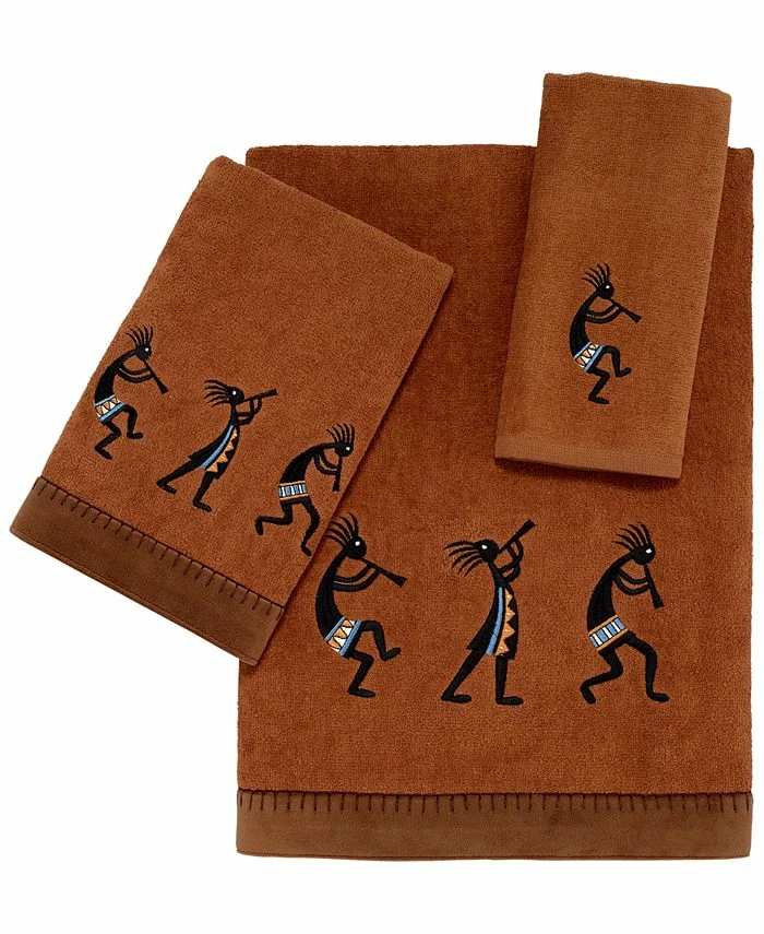 Bring a southwestern feel to any bathroom décor with Zuni by Avanti featuring suede fabric band, saddle stitch and embroidered Kokopellis on a 100% Cotton velour towel.