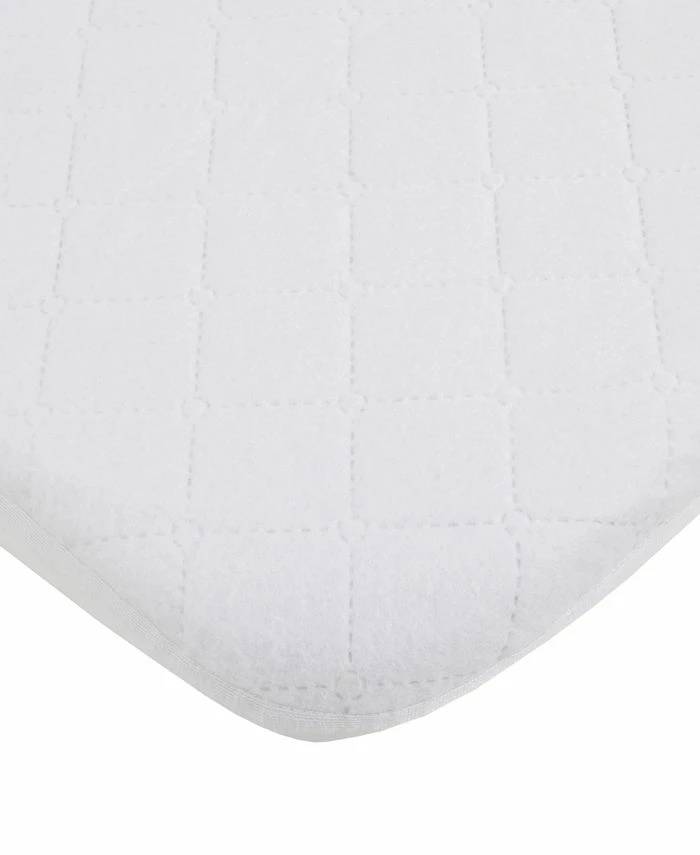 This quilted fitted mini crib pad fits a Mini Crib mattress. Helps keeps baby’s mattress comfy and dry. Perfect baby basic every nursery needs.