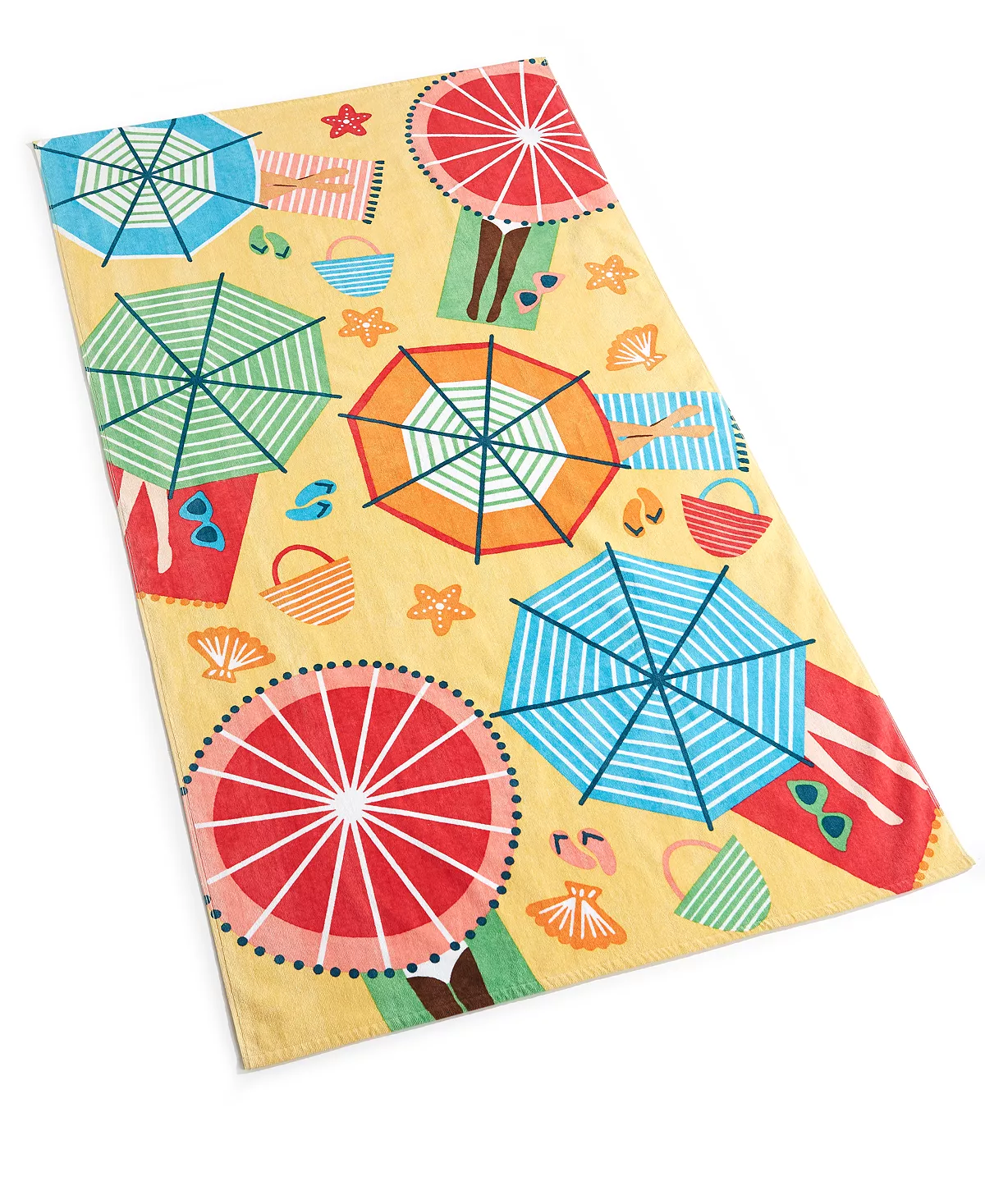 Enjoy a relaxing day at the beach with the Printed Beach Towel from Charter Club, featuring a vibrantly colored print and the soft comfort of cotton.