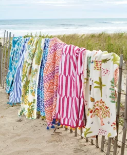Inspired by John Robshaw’s limited edition design, this resort towel is your perfect vacation companion. Reversible to fit your travel style, exotic birds and tropical plants fulfill your most adventurous dreams. Geometric details on the reverse allows you to relax and take in the moment.