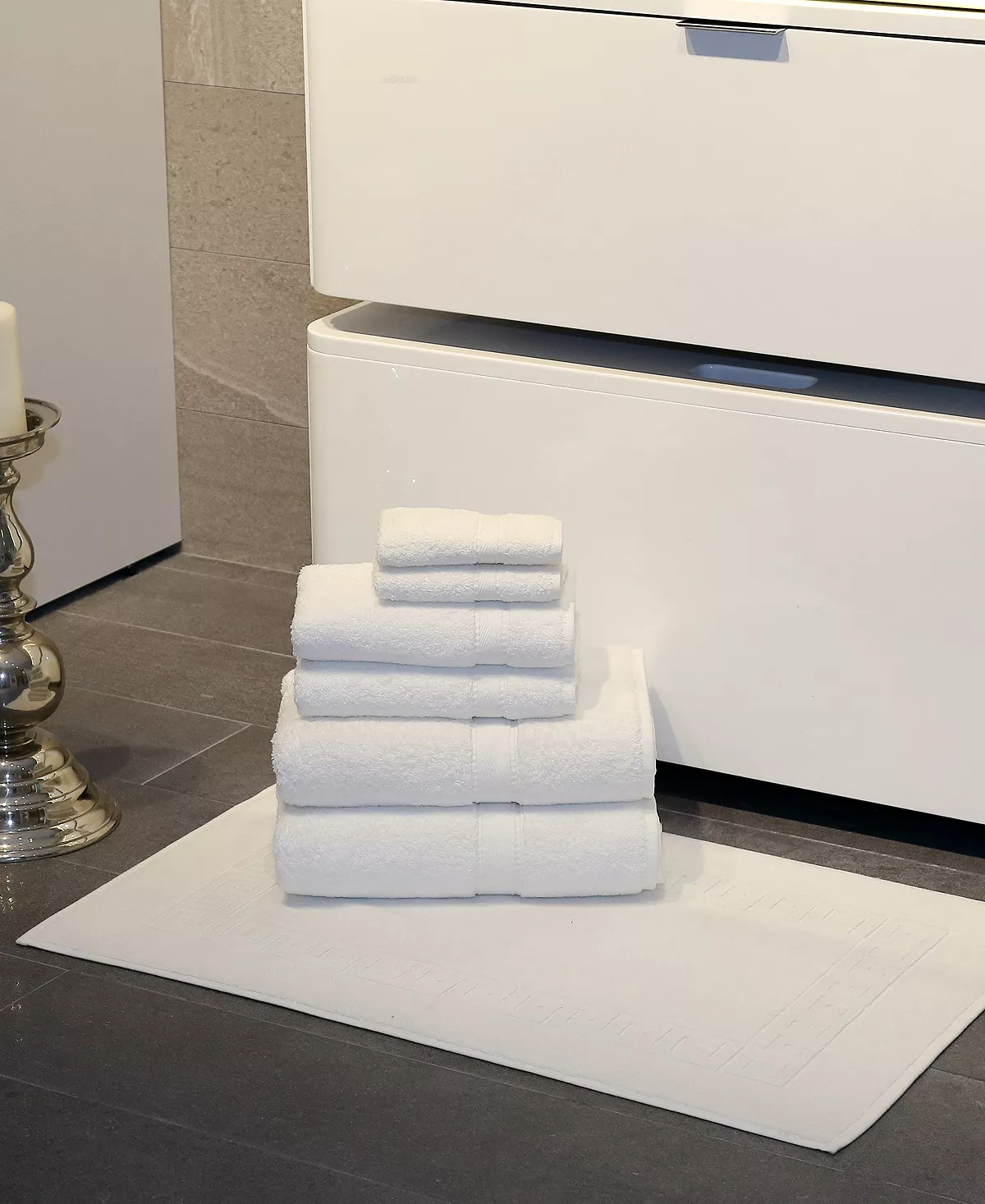 - Set includes 2 bath towels, 2 hand towels, 2 washcloths, and one bath mat