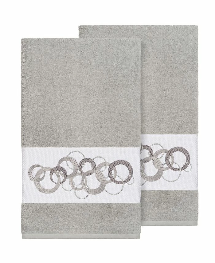 The ANNABELLE Embellished Towel Collection features a whimsical circle motif with metallic accents on a textured woven border. These soft and luxurious towels offer lasting absorbency and superior durability. Set includes 2 Bath Towels.