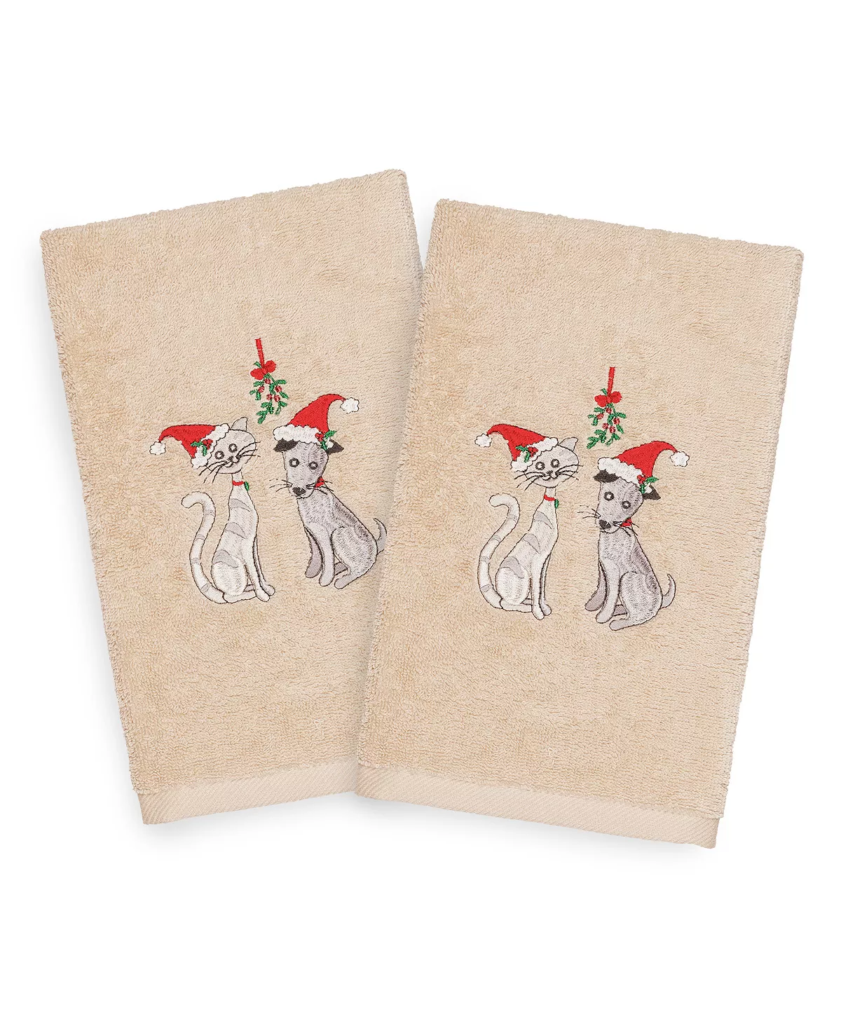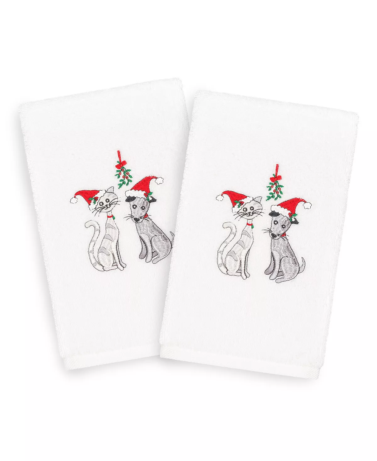 Your Christmas decorations are not complete without lighthearted embroidered hand towels for your guest bath. These “Christmas Cute Couple” towels feature a whimsical cat & dog under the sparkling mistletoe, wearing red hats, which bring holiday spirit to your home! This special & luxurious Christmas towel is manufactured with more cotton per square inch for maximum softness and absorbency. Our products are produced in Linum’s state-of-the-art vertically integrated green factory in Turkey, which runs on 100% solar energy.