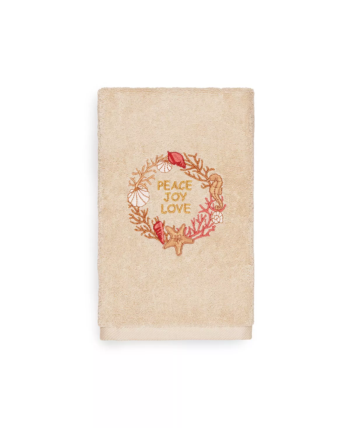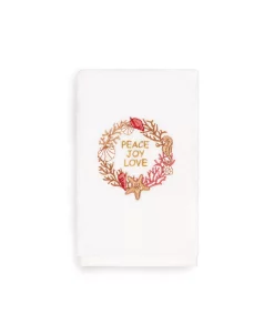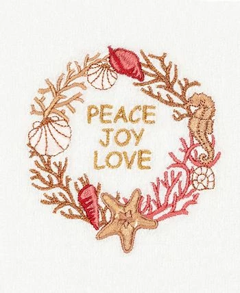 Bring a joyous Christmas spirit to your decorations with elegant embroidered hand towels for your guest bath. These “Christmas Peace” towels feature a wreath of sparkling coral, seashells, starfish & seahorse, graced by the sweet sentiments: Peace, Joy & Love, which will add a blissful mood to your festivities! This special & luxurious Christmas towel is manufactured with more cotton per square inch for maximum softness and absorbency. Our products are produced in Linum’s state-of-the-art vertically integrated green factory in Turkey, which runs on 100% solar energy.