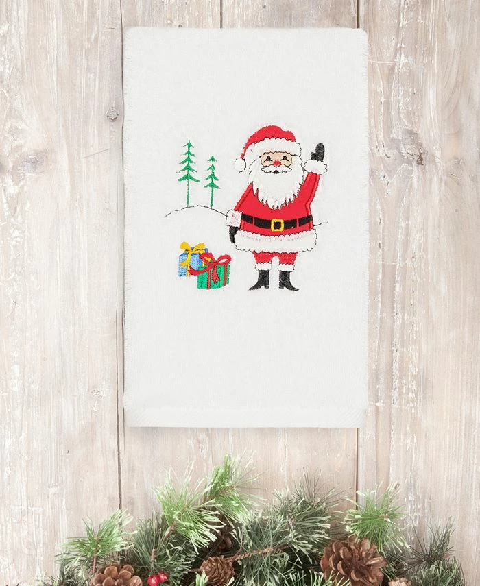 Your Christmas decorations are not complete without lighthearted embroidered hand towels for your guest bath. These “Christmas Santa Waving ” towels feature jolly Santa, whimsical trees & colorful gift boxes, which brings holiday spirit to your home. This special & luxurious Christmas towel is manufactured with more cotton per square inch for maximum softness and absorbency. Our products are produced in Linum’s state-of-the-art vertically integrated green factory in Turkey, which runs on 100% solar energy.