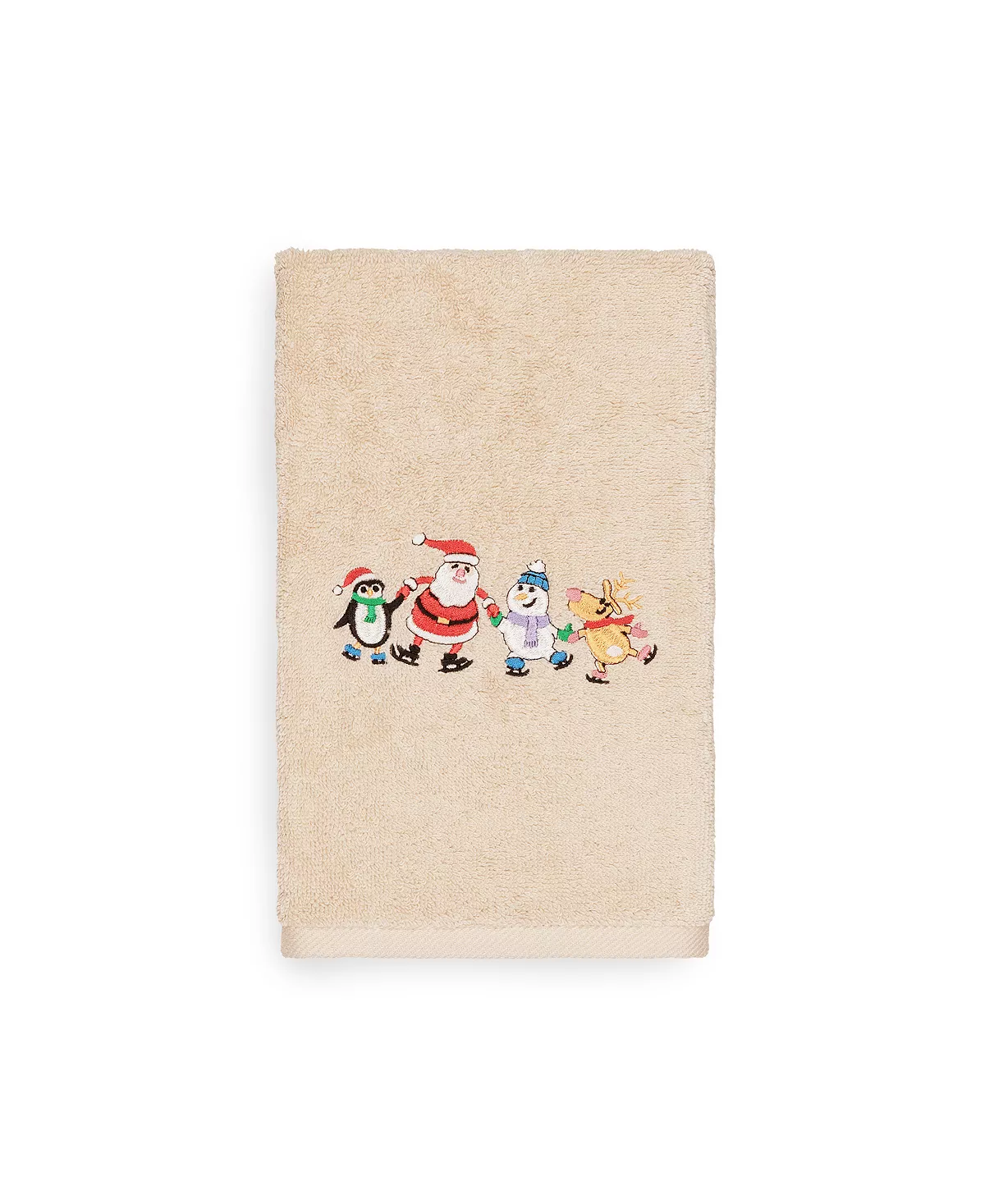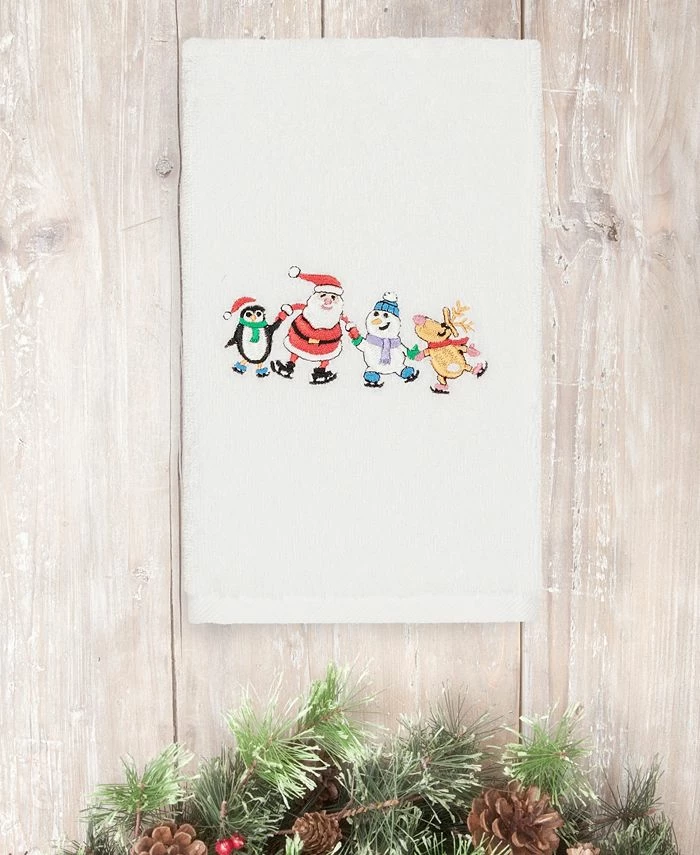 Your Christmas decorations are not complete without lighthearted embroidered hand towels for your guest bath. These “Christmas Skating Party” towels feature a whimsical group holding hands as they frolic with Santa, which brings holiday spirit to your home! This special & luxurious Christmas towel is manufactured with more cotton per square inch for maximum softness and absorbency. Our products are produced in Linum’s state-of-the-art vertically integrated green factory in Turkey, which runs on 100% solar energy.