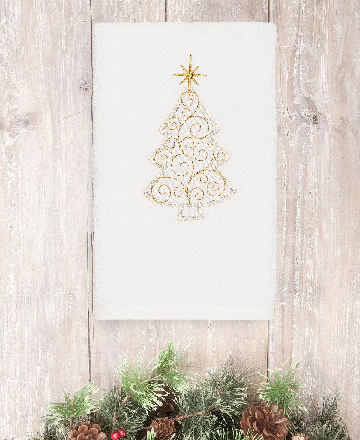 Your Christmas decorations are not complete without lighthearted embroidered hand towels for your guest bath. These “Christmas Scroll Tree” towels feature a modern applique tree decorated with sparkling metallic scrolls and topped with a radiant Christmas star, which brings holiday spirit to your home. This special and luxurious Christmas towel is manufactured with more cotton per square inch for maximum softness and absorbency. Our products are produced in Linum’s state-of-the-art vertically integrated green factory in Turkey, which runs on 100% solar energy.