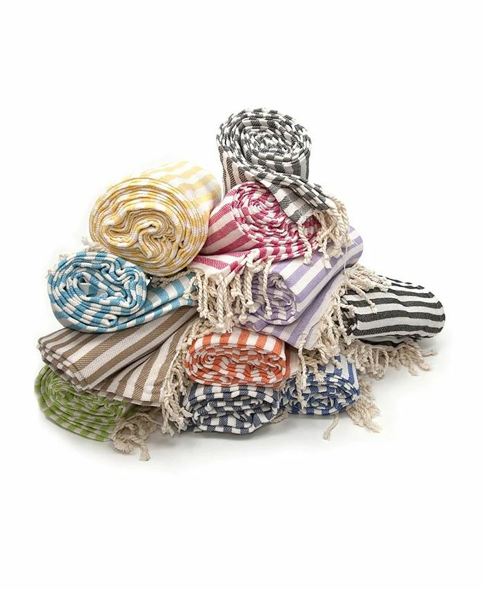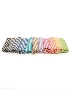 The Fun in the Sun Pestemal Beach Towels are essential to have at the beach, spa or by the pool. They can be used on your lounge chair or worn as a pareo, sarong, or shawl. These fashionable and organic cotton fouta towels are available in a full range of colors and are becoming a must have for every household.