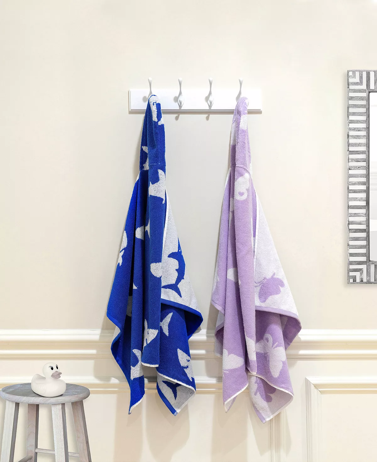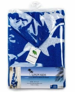 The Linum Kids jacquard hooded shark patterned terry wrap, made from the purest and finest extra long staple 100% Turkish Aegean cotton, is exceptionally absorbent, durable and super soft. The yarn dyed jacquard hooded wrap will be your child’s favorite way to snuggle up to stay dry and warm after bath, beach and pool time.