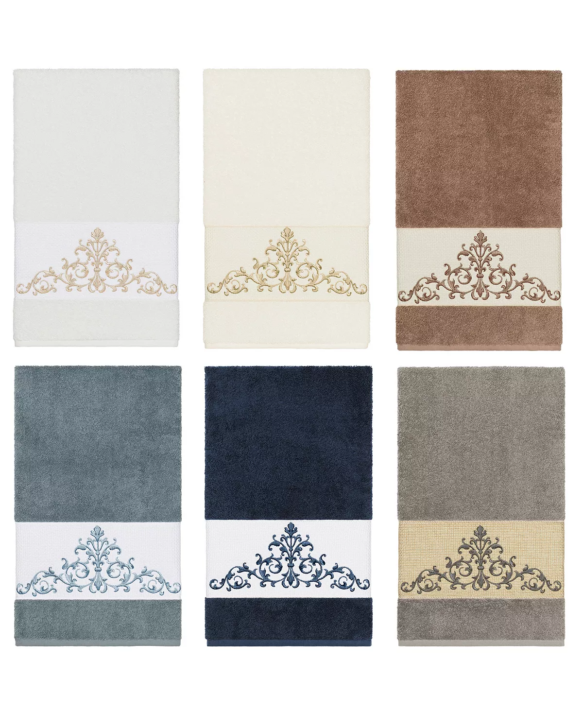 The SCARLET Embellished Towel Collection features an elegant scrolling crest motif on a textured woven border. These soft and luxurious towels offer lasting absorbency and superior durability. These lavish Turkish cotton towels are produced in Linum’s state-of-the-art vertically integrated green factory in Turkey, which runs on 100% solar energy.