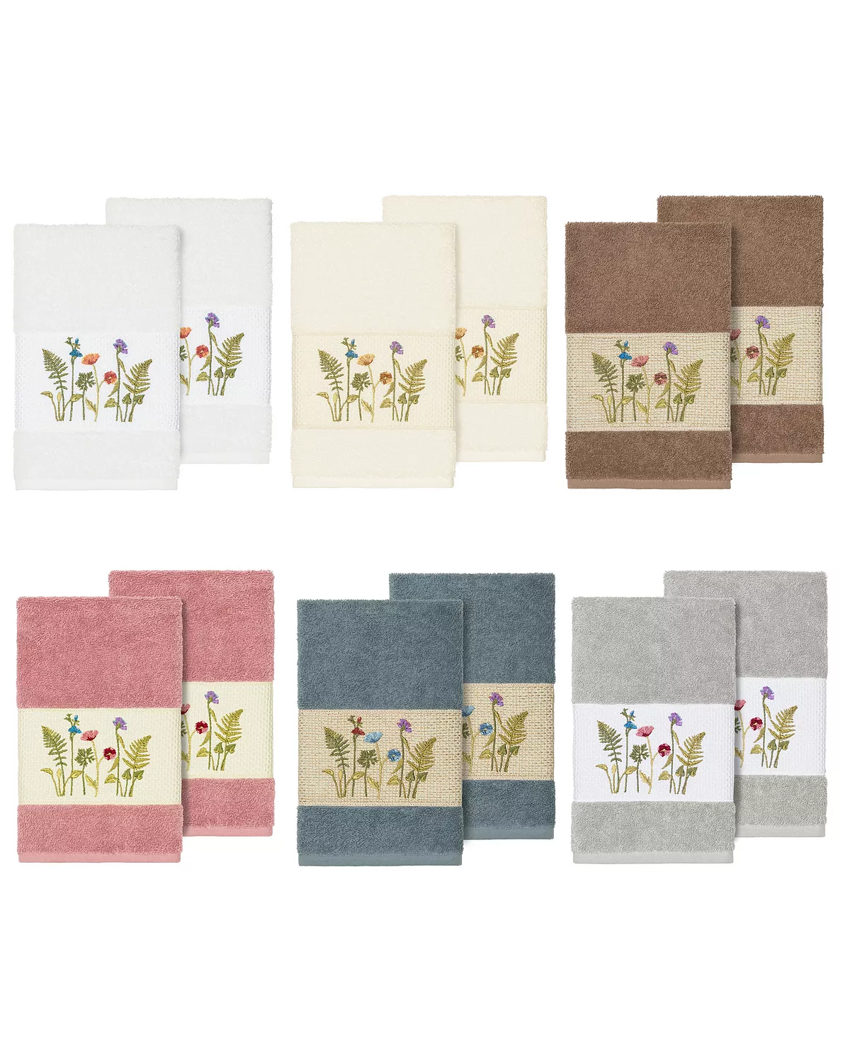 The SERENITY Embellished Towel Collection features an intricate wildflower embroidery motif on a textured woven border. These soft and luxurious towe offer lasting absorbency and superior durability.Set includes 2 Hand Towels.