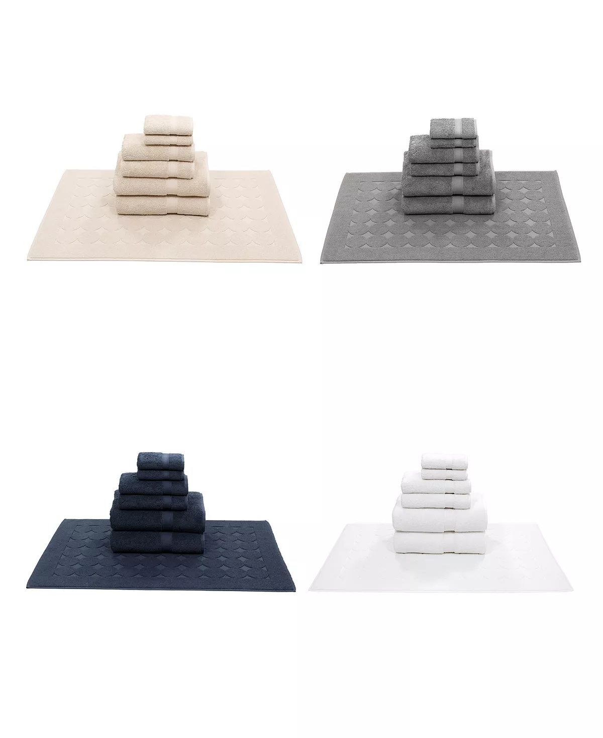 - Set includes 2 bath towels, 2 hand towels, 2 washcloths, and one bath mat
