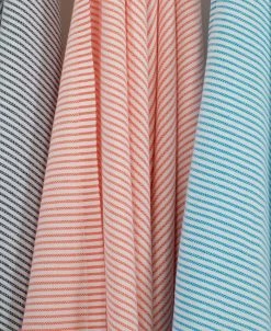 The elegant thin stripe pestemal beach towel is thin enough to be worn as a scarf, thick enough to be an absorbent beach towel, long enough to be worn as a chic sarong, and lightweight enough to fit into the smallest of beach bags.