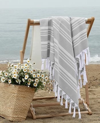 This trendy and elegant terry pestemal towel is offered in both a sophisticated stripe as well as an elegant polka dot pattern. The classic terry towel texture is brought to life in this pestemal towel designed with a combination of absorbent terry cloth on one side and soft cotton on the other.