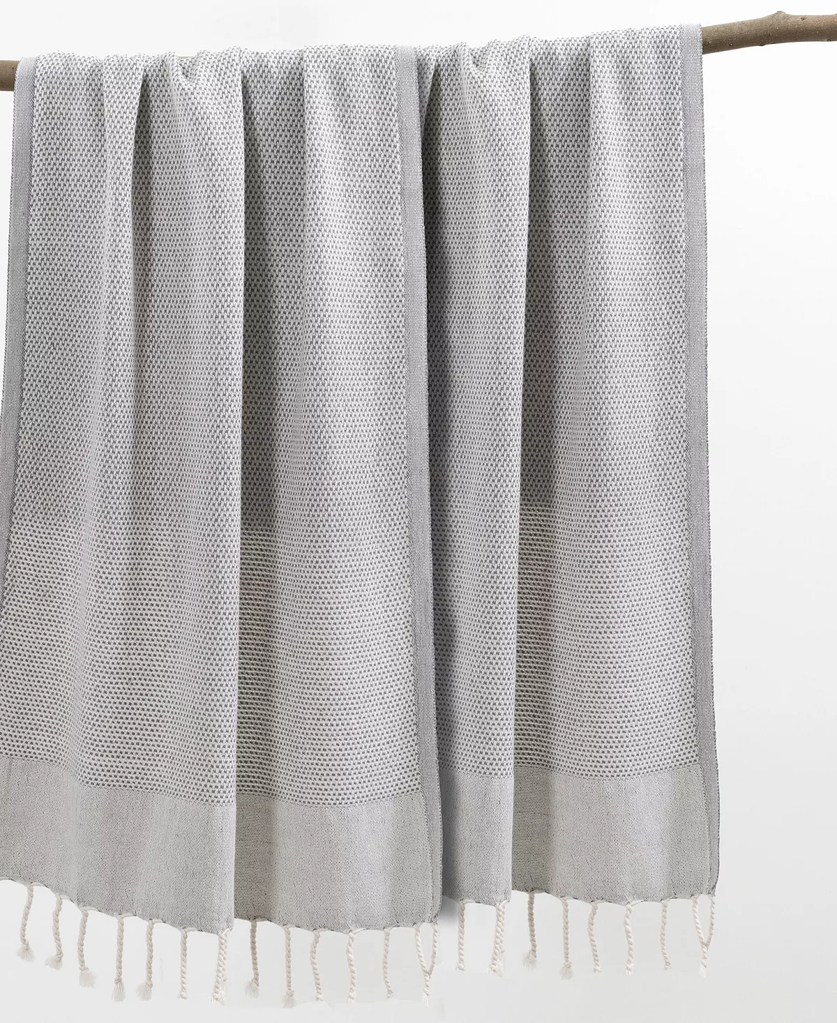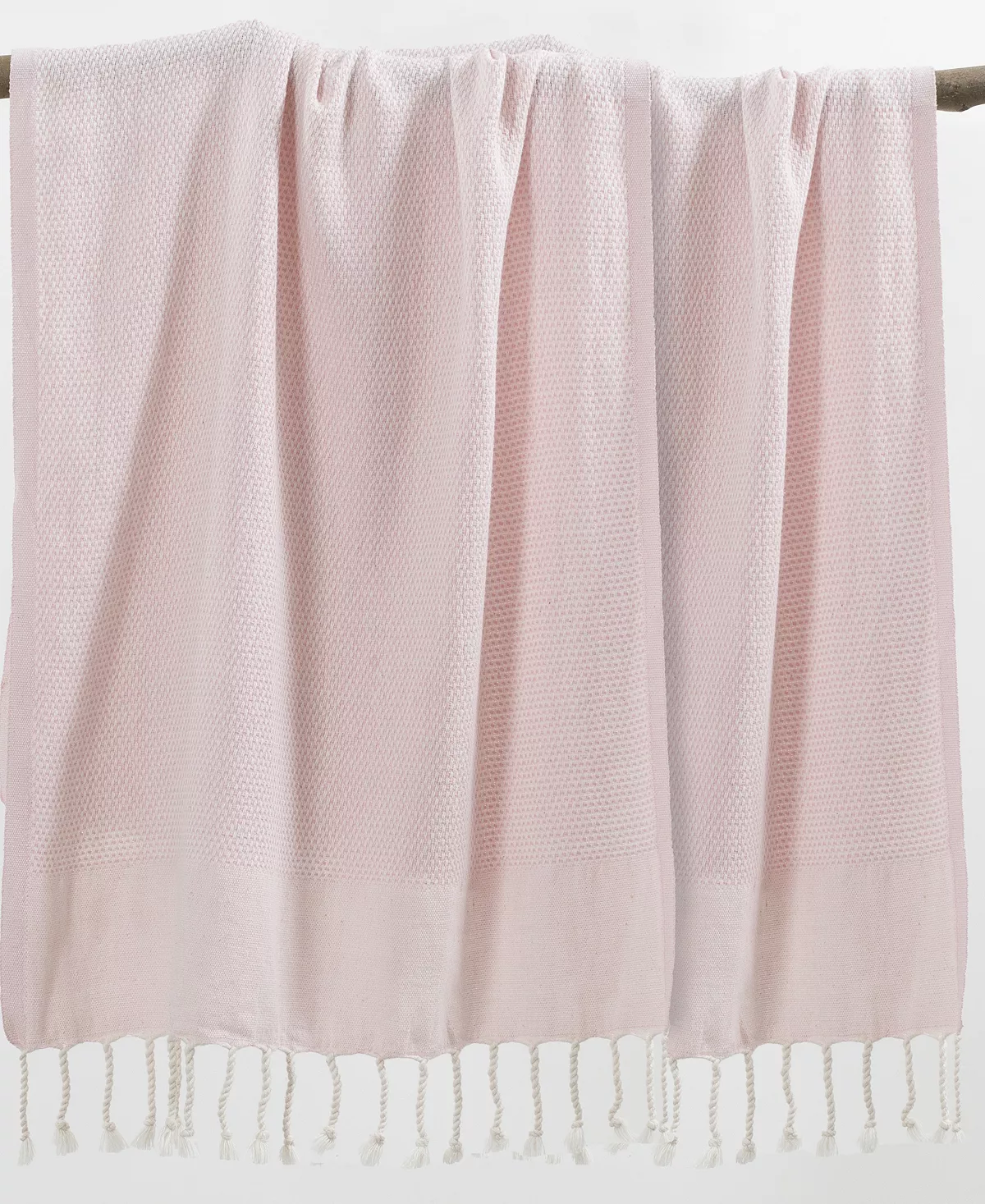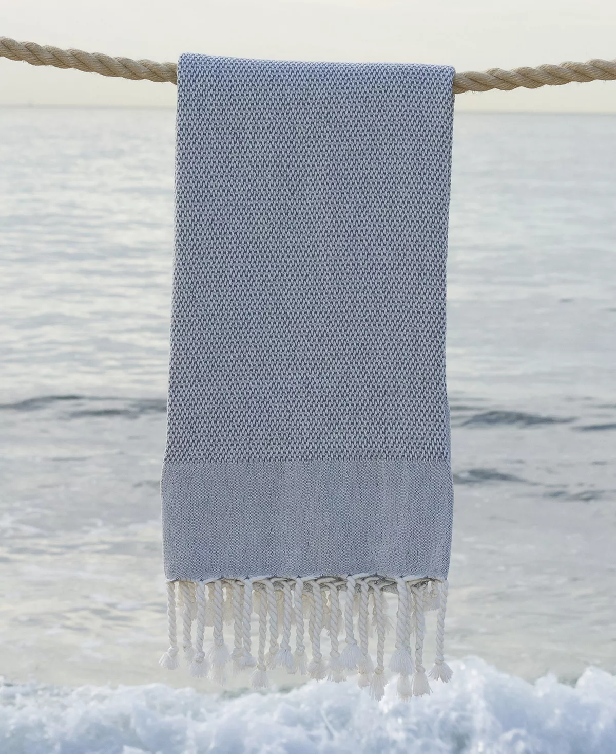 Pamper yourself with the luxurious, soft, absorbent and fast drying fun in paradise pestemal beach towel. Featuring hand knotted fringe and a lightweight textured bird’s eye body weave with plain weave border, this pestemal can be used as a bath towel, beach blanket, sarong, shawl, table cloth, etc.