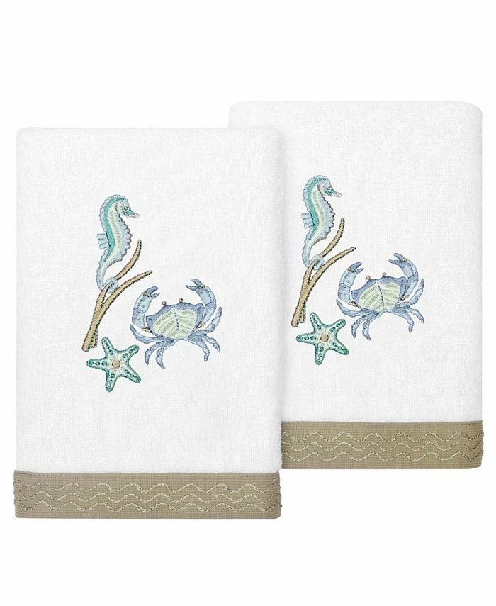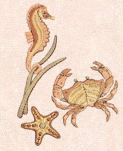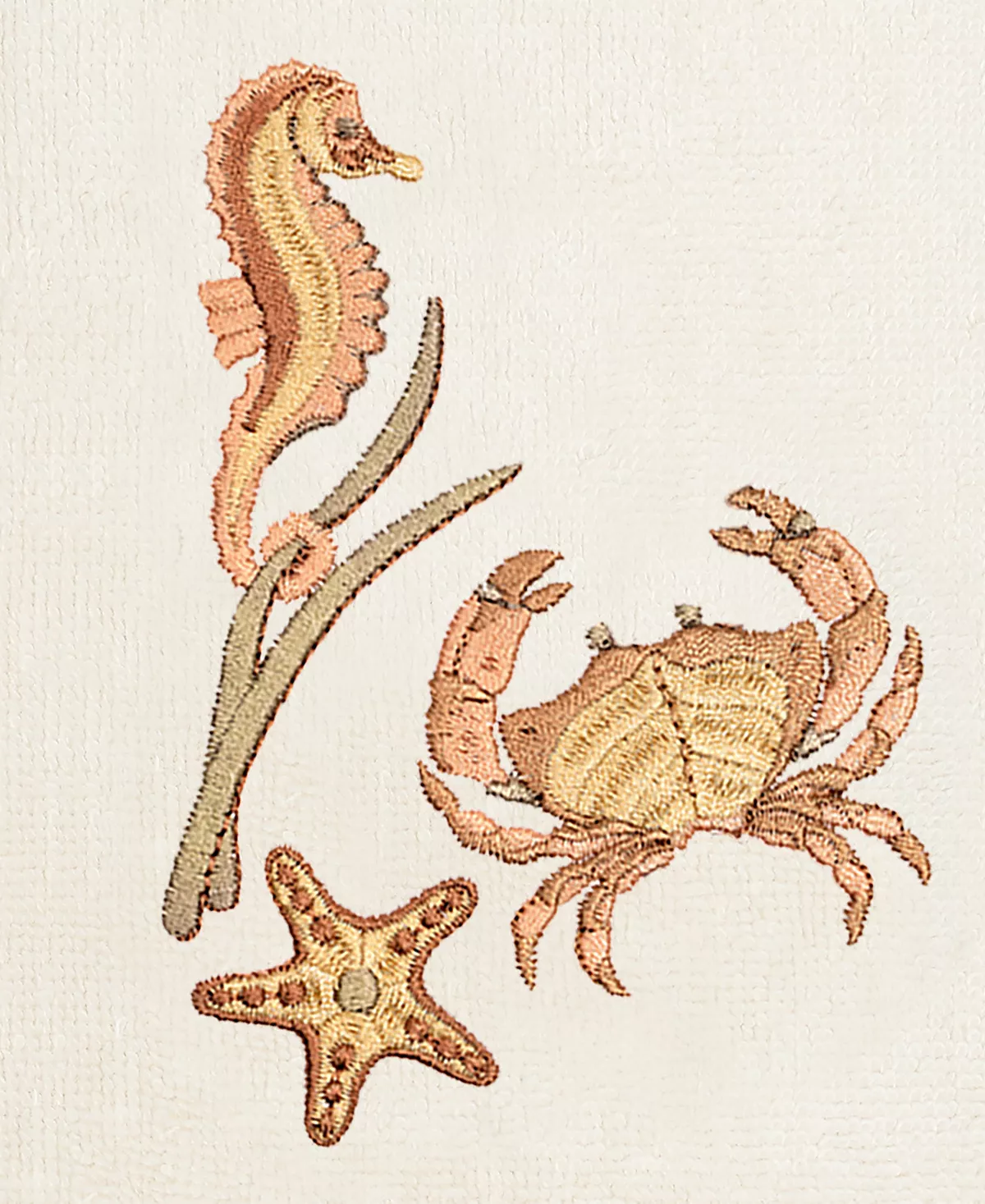 The AARON towels feature colorful sea life and are trimmed with an embroidered canvas border. Cloud soft and absorbent, these luxurious, durable towels keep their plush appearance after washing. The AARON towel collection brings coastal spirit and richness to your home decor and makes a great gift.