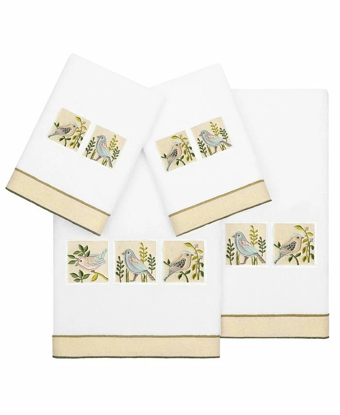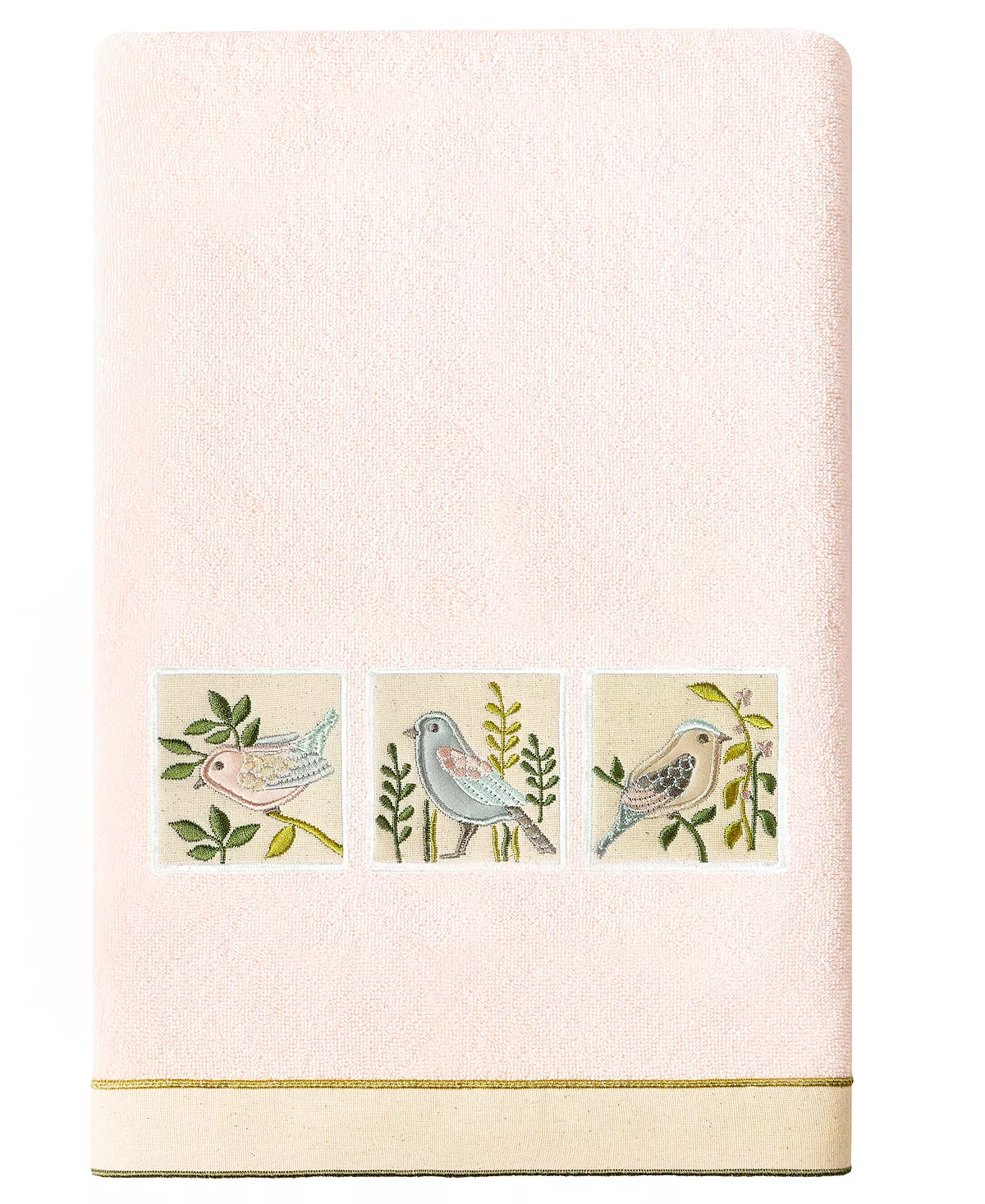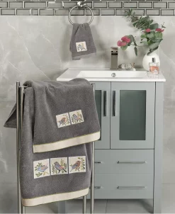 The BELINDA towels feature charming applique birds and are trimmed with a muslin border. Cloud soft and absorbent, these luxurious, durable towels keep their plush appearance after washing. The BELINDA towel collection brings a country spirit and richness to your home decor and makes a great gift.