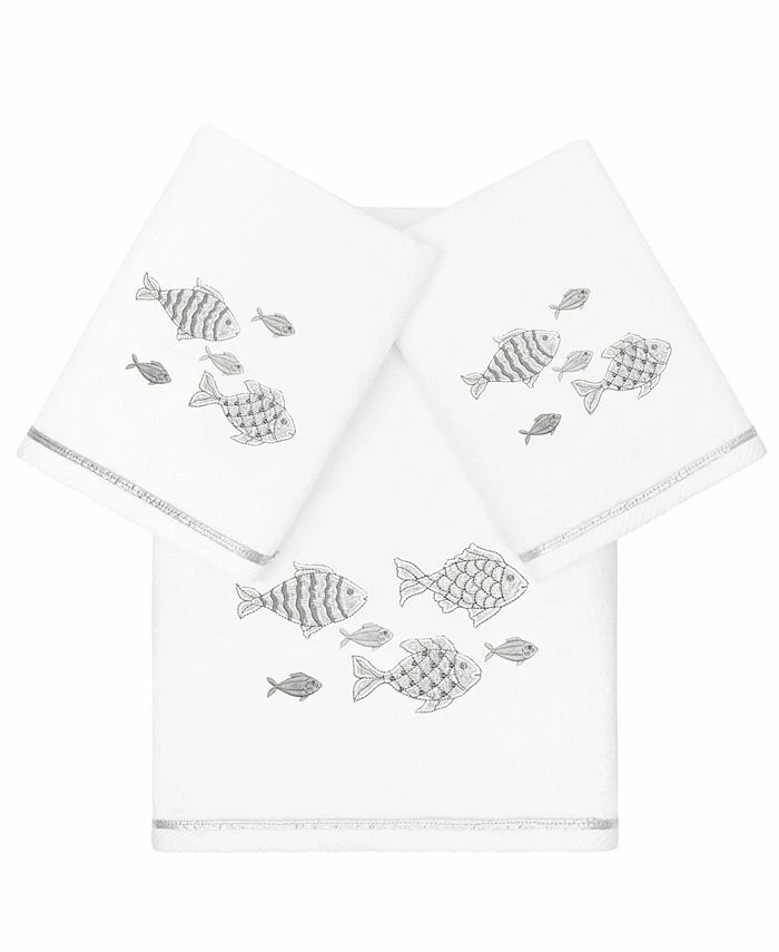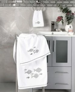 The FIGI towels feature sparkling applique fish and are trimmed with a matching cord. Cloud soft and super absorbent, these luxurious, durable towels keep their plush appearance after washing. The FIGI towel collection brings a coastal spirit and richness to your home decor and makes a great gift.
