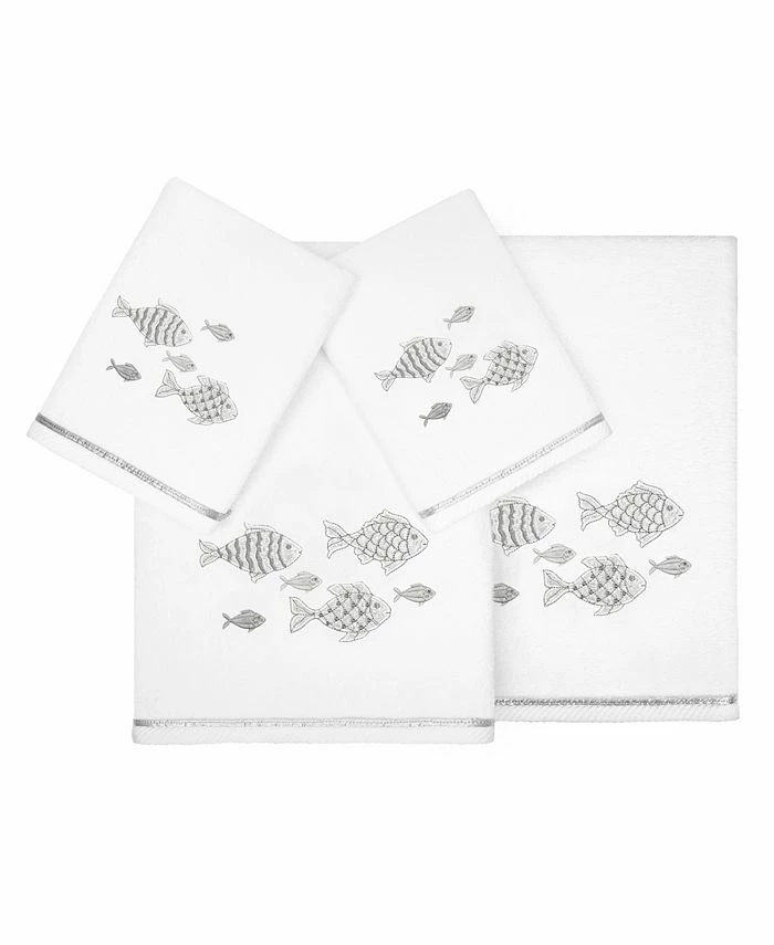 The FIGI towels feature sparkling applique fish and are trimmed with a matching cord. Cloud soft and super absorbent, these luxurious, durable towels keep their plush appearance after washing. The FIGI towel collection brings a coastal spirit and richness to your home decor and makes a great gift.