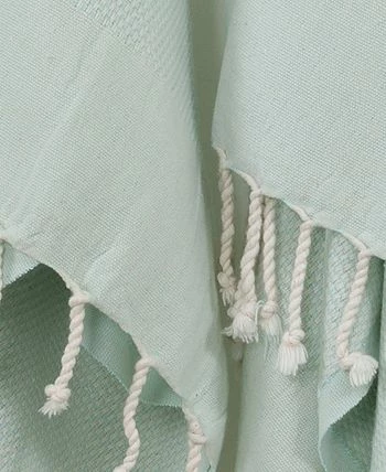 - Textured bird’s eye body weave with plain weave border and hand knotted fringe