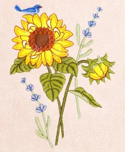 Create a mood of country charm in your bath with the GIRASOL Embellished towel collection. These towels feature an applique embroidered bouquet of vibrant sunflowers and lavender, highlighted by a bright bird perched on top. This collection brings a natural spirit and richness to your home decor.