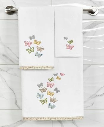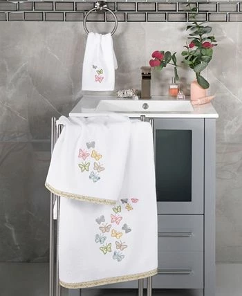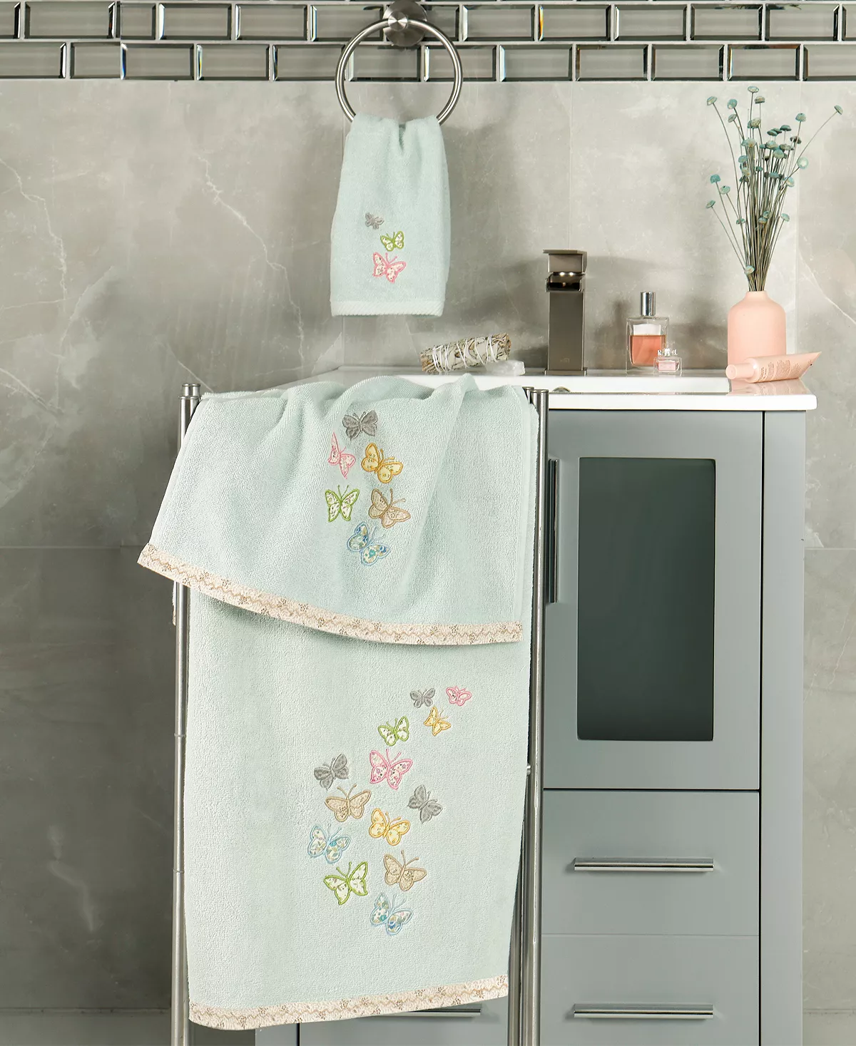 The MARIPOSA towels feature calico applique butterflies and are trimmed with a calico border. Cloud soft and absorbent, these luxurious, durable towels keep their plush appearance after washing. This towel collection brings a cottage spirit and richness to your home decor and makes a great gift.