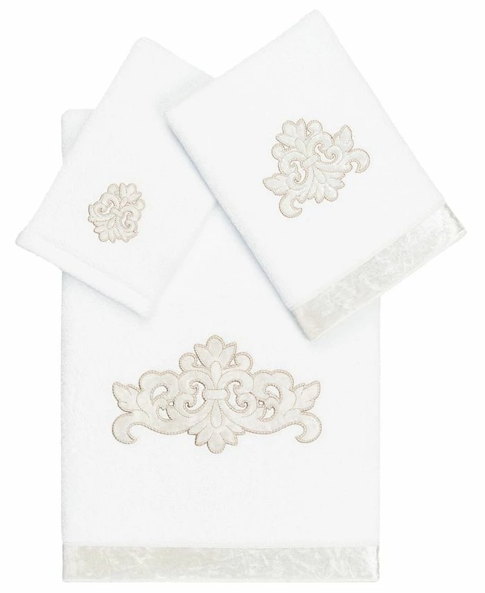 The MAY towels feature a classic velvet crest applique and are trimmed with the same lustrous velvet border. Cloud soft and super absorbent, these luxurious, durable towels keep their plush appearance after washing. The MAY towel collection brings a refined spirit and richness to your home decor.