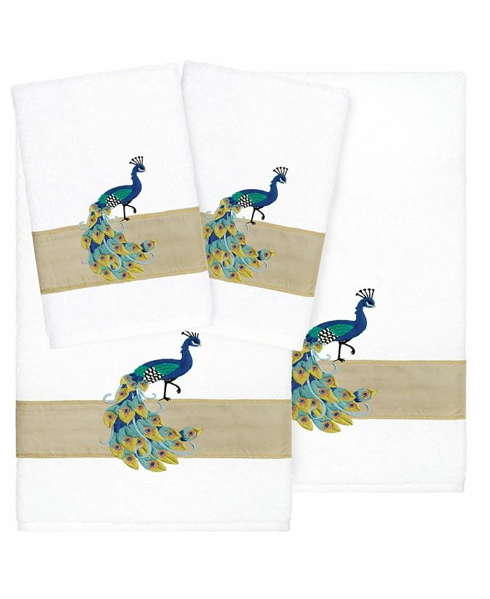 The PENELOPE towels feature an intricate peacock embroidery on a sparkling taffeta border. Cloud soft and super absorbent, these luxurious, durable towels keep their plush appearance after washing. The PENELOPE towel collection brings a glamorous spirit and richness to your home decor.