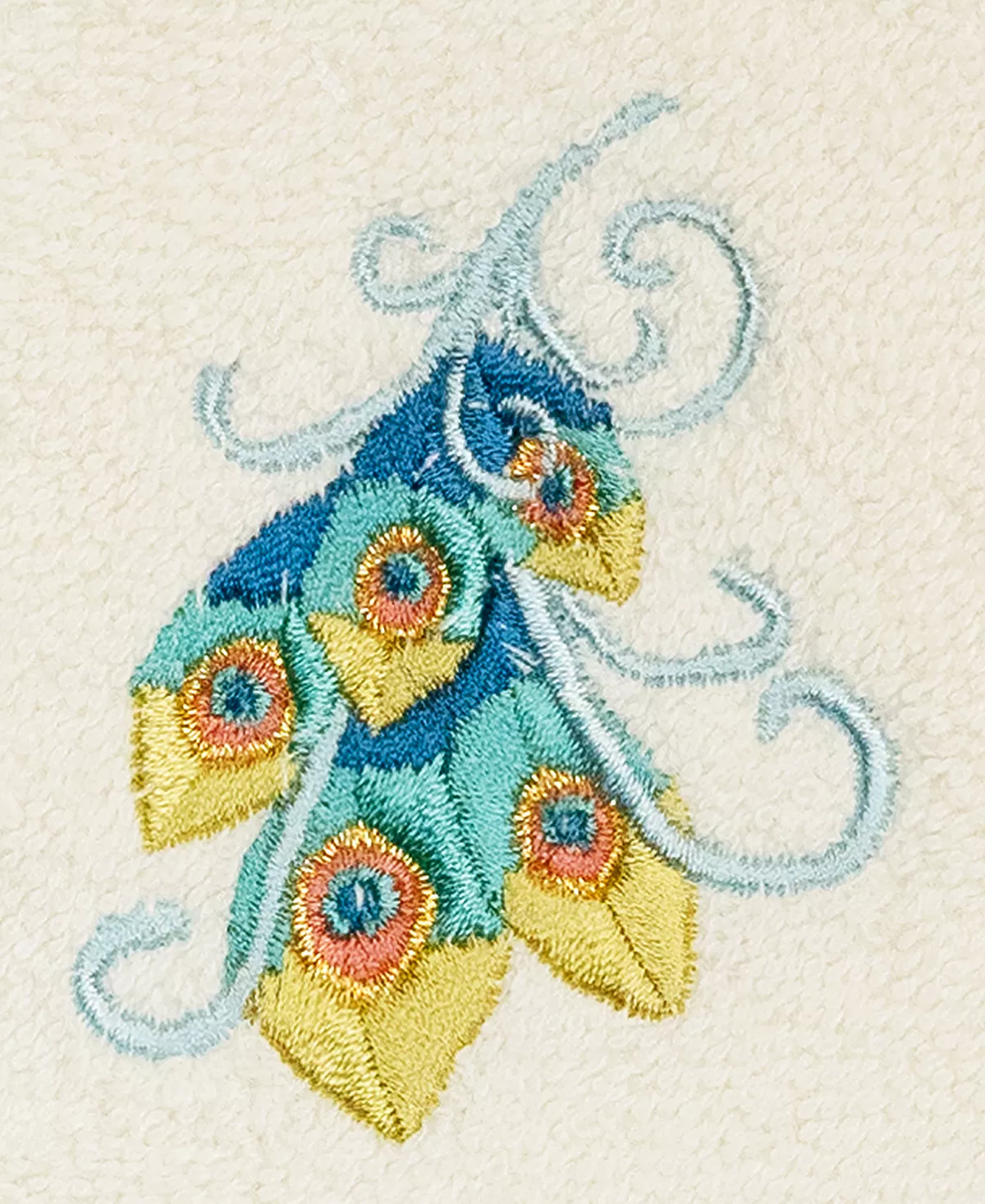 - Embroidered peacock design