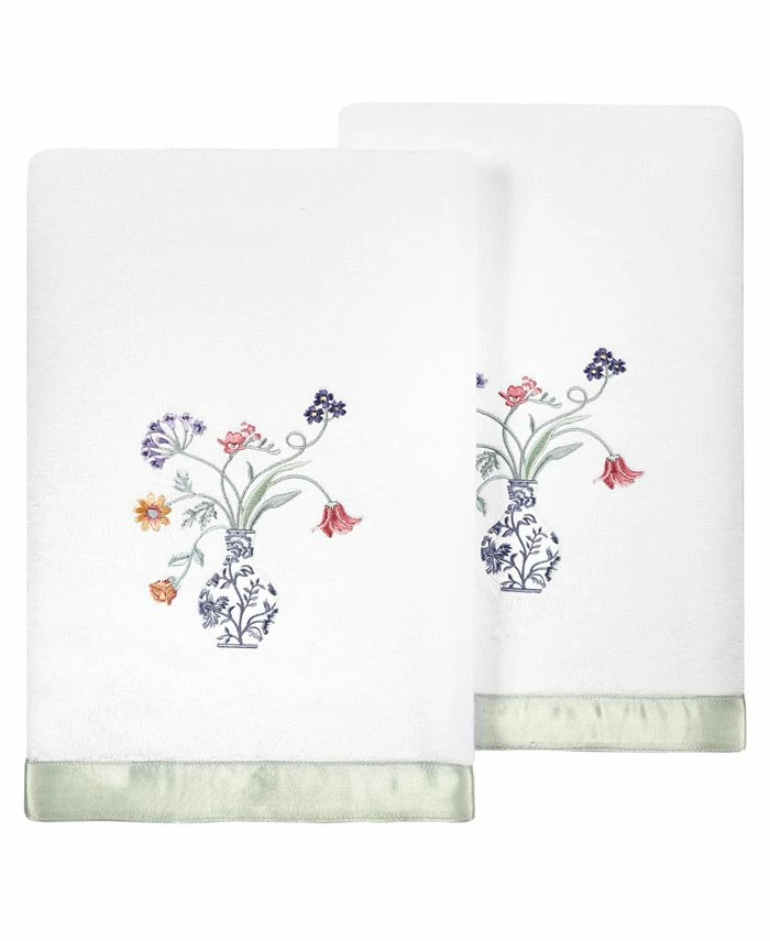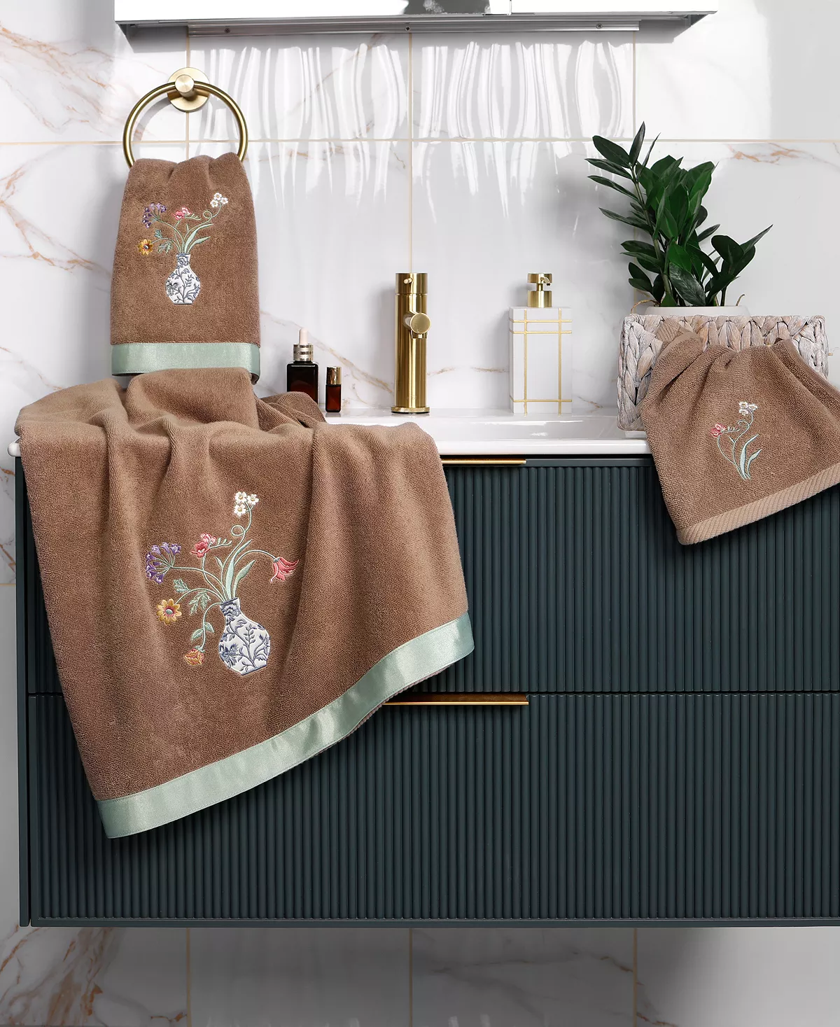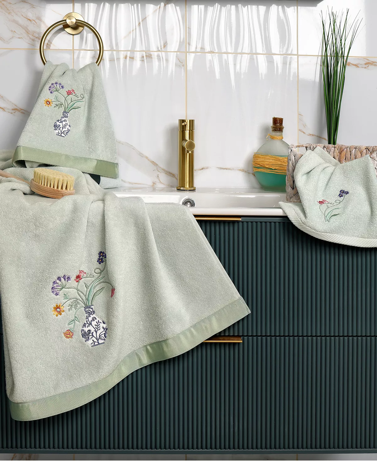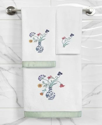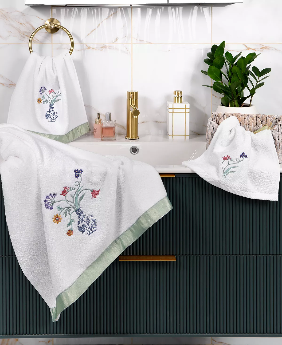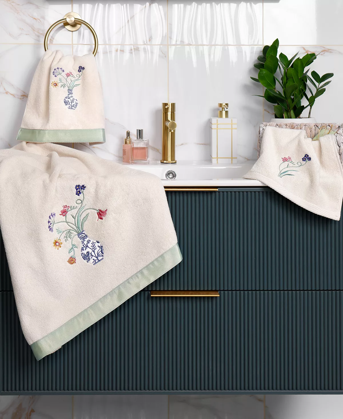 The STELLA towels feature lovely flower stems in an applique blue and white vase and are trimmed with a lustrous bengaline border. Cloud soft and absorbent, these luxurious, durable towels keep their plush appearance after washing.