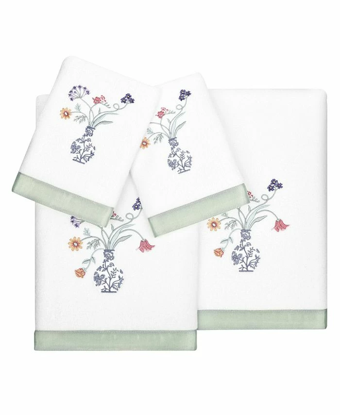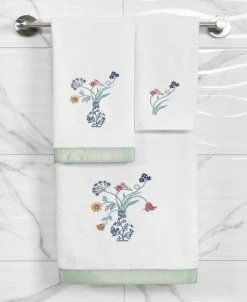 The STELLA towels feature lovely flower stems in an applique blue and white vase and are trimmed with a lustrous bengaline border. Cloud soft and absorbent, these luxurious, durable towels keep their plush appearance after washing.